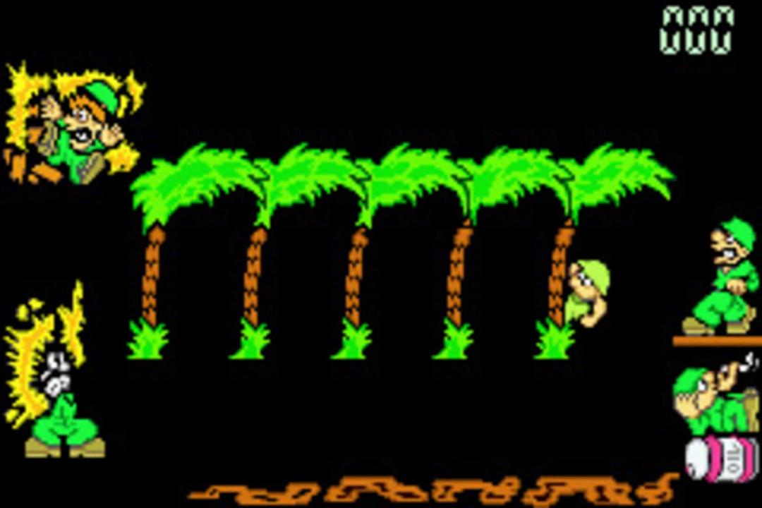 Mario's Bombs Away is a game for the Game & Watch. It was one of the six games made for the Panorama line. The game involves Mario, a soldier in this game, on a mission to receive a bomb from his buddy on the left side of the screen and carry it to his troop on the other side. The enemy is waiting in the trees in his path, so he must keep his bomb away from their torches.