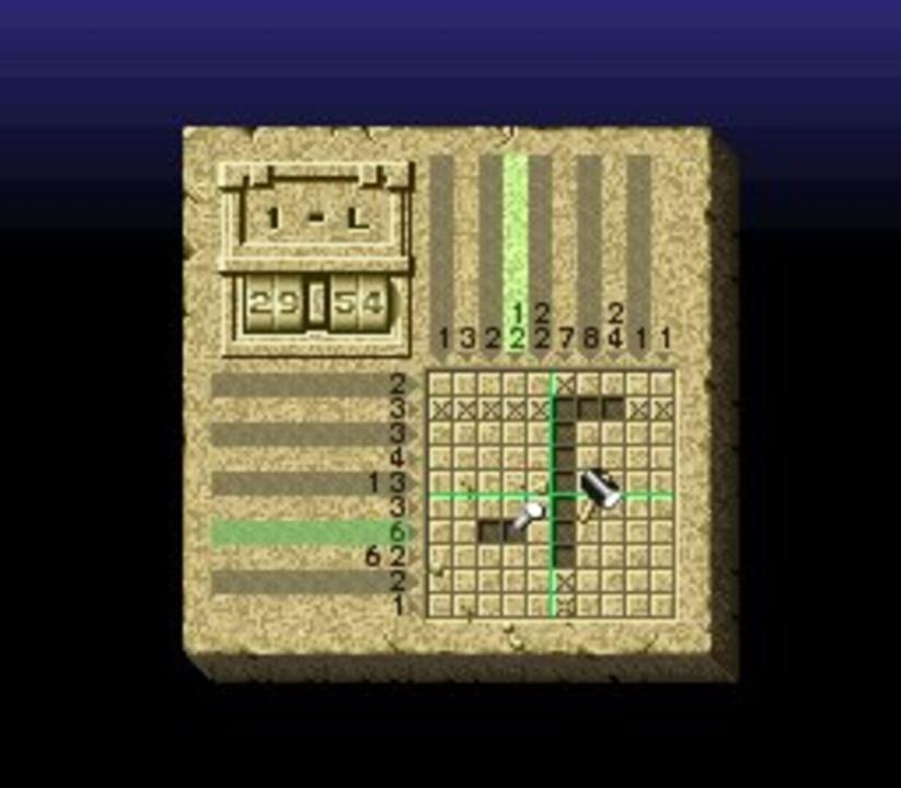 Mario's Super Picross is the first sequel to the Game Boy game, Mario's Picross, and can be played on the Super Famicom. After the commercial failure of Mario's Picross in the West, this sequel was released only in Japan. The game plays much the same way as the first, except Wario appears in it and presents his own set of special rules, which also return in the sequel. Other features includes game-saves, hints and tutorials.
