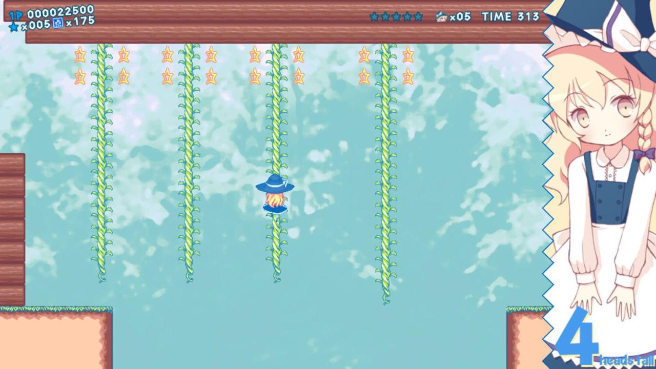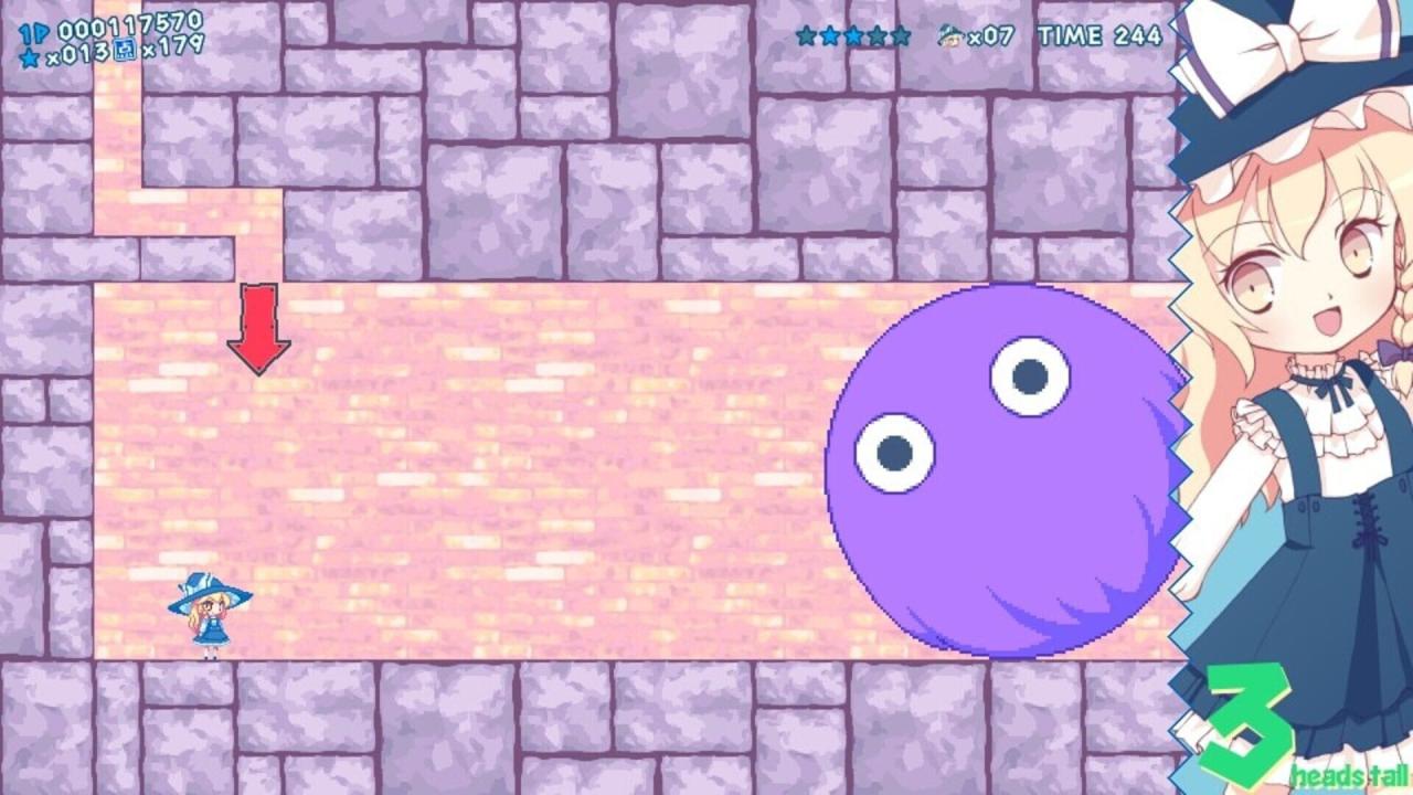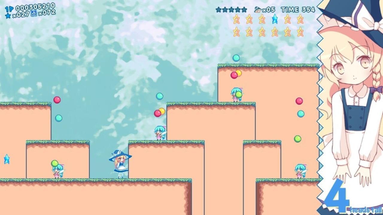When Marisa was engaged in dubious mushroom magic like always, she accidentally ate a mushroom that "suppresses her magic and makes her 2 heads tall," so she goes on an adventure to find and regain her former body. Eat whatever mushroom you can find and become bigger!