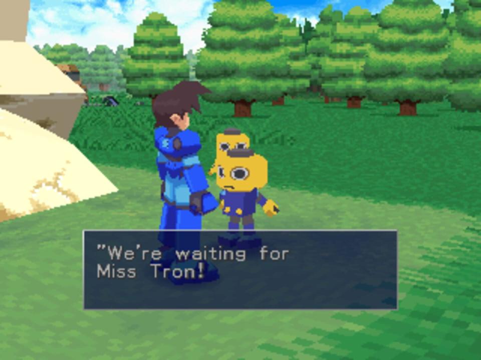 On a tower ruin in the middle of the ocean, Mega Man retrieves a sizable blue refractor. Defeating the Reaverbots blocking his way out, he makes his way to the Flutter, which leaves the ruin. However, the Flutter experiences some engine problems and crashlands on Kattelox Island. From there, the Casketts try to find a way to repair their ship. However, when pirates attack Kattelox's city with giant mechanical weapons, Mega Man decides to stop them. Mega Man defeats the armored robots patrolling Downtown, led by Tron Bonne, and the ones laying a siege to City Hall, led by Bon Bonne. Their leader, Teisel, decides to attack the Clozer Woods ruins, but Mega Man defeats him as well. Kattelox's mayor, Amelia, tells Mega Man the Bonnes are searching for the island's secret treasure and that legend says if somebody obtains it, a great disaster will befall the island. Amelia asks Mega Man to investigate the island's ruins. In the Forest Ruins, Mega Man finds a large yellow Refractor. He uses this to power a boat in Uptown to access the Lake Ruins, defeating the Bonnes who had stolen the other boats and turned them into robotic weapons. Mega Man finds a huge red refractor in the Lake Ruins, which Roll and he use to repair the Flutter to access the entrance to the Clozer Woods ruins. Inside, Mega Man unlocks the island's largest ruin, the Main Gate, hoping to find the reason why Reaverbots from the island are being activated. On the way back, the Bonnes confront the Flutter with their mothership, but Mega Man overpowers them again and destroys the Gesellschaft. When Mega Man explores the depths of the Main Gate, he unlocks Sub-Cities across the island. While exploring the three of them, he finds the Bonnes in the Old City and destroys their newest robot, a colossal monster named Bruno. Accepting defeat, the Bonnes leave him, though they plan to steal the treasure of the Main Gate once Mega Man gets it. After using the three keys from the Sub-Cities to access the depths of the Main Gate, Mega Man discovers a stasis chamber for the ancient robot Mega Man Juno, a 3rd class bureaucratic unit from Eden, a space station orbiting above the planet. Mega Man accidentally awakens Juno, who refers to Mega Man as "Mega Man Trigger", and realizes that Mega Man is suffering from memory loss. Juno claims that the island's population needs to be purged so it will be more controllable, and leaves Mega Man in a trap while he engages the program in the deepest depths of the ruin. Mega Man escapes the trap with help from Tron and Teisel and confronts Juno, and despite Juno upgrading to a giant form, Mega Man defeats him. Even with Juno's physical body gone, his last words transfer his backup data into the systems of Eden and confirm the Carbon Purification Process. Data gives new commands to the system, stopping the Purification and deleting Juno's backup data from Eden. Data then reveals to Mega Man that he contains all of his previous memories from when he was Mega Man Trigger. Mega Man had stored his memories into Data as a way to prevent Eden from ever tampering with it. Data promises to restore Mega Man's memory when the time comes. The residents proclaim Mega Man a hero and the Caskett family rides off in the repaired Flutter to continue their journey. Meanwhile, the Bonnes sail on a small boat built by Tron out of the scraps from the other robots, with the colossal refractor from the Main Gate in tow.