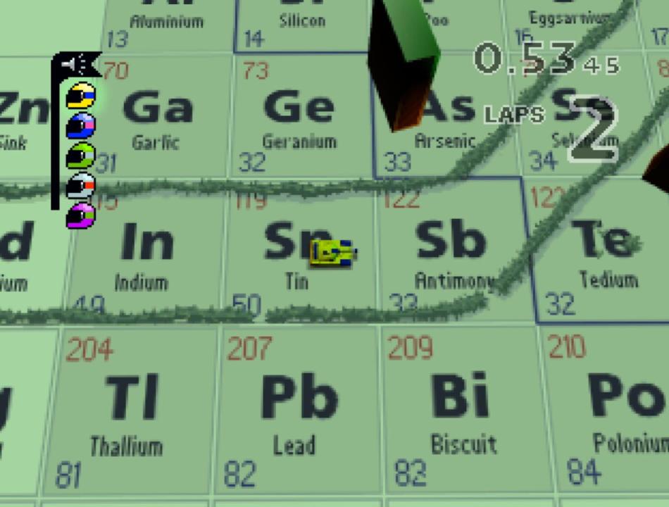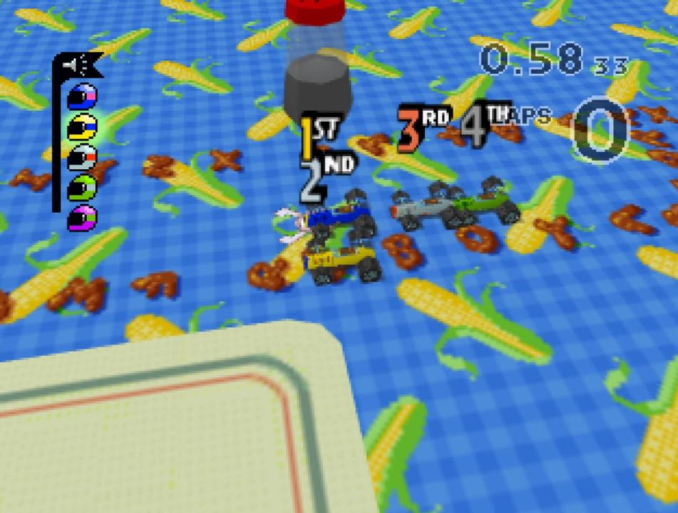 With a quirky mix of toy car racers and sophisticated gameplay, Micro Machines 64 Turbo guarantees to be a refreshing addition to the stable of standard racing games. The wide variety of vehicles featured includes Formula 1 racers, speed boats, monster trucks, tanks, and ice cream trucks. Choose from 25 whimsical tracks, which run the gamut from a kitchen table to a chemistry lab, each including the appropriate props to match the d¿cor. Such detail rich touches keep this game interesting, even to the most jaded gamer. Belying the kiddie car appearance, the game requires you to plan strategically if you want to emerge the winner, making good use of the weapons at your disposal.