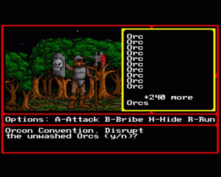 The Sequel to the successful Might and Magic I, it boasted better graphics, a larger world, but still pretty much the same game engine and presentation. Embark on a glorious journey then save the world of CRON and yourself. A balanced party is a necessity in this game. There are several locations and items that are restricted to certain genders, alignments, or races. A party made up of Good Human Males won't get you very far. Time plays a large role in this game. Time travel is a part of it, but on a more basic level, you will find that characters age as the game goes on. If you wait too long, your characters' statistics will change to reflect their aging.