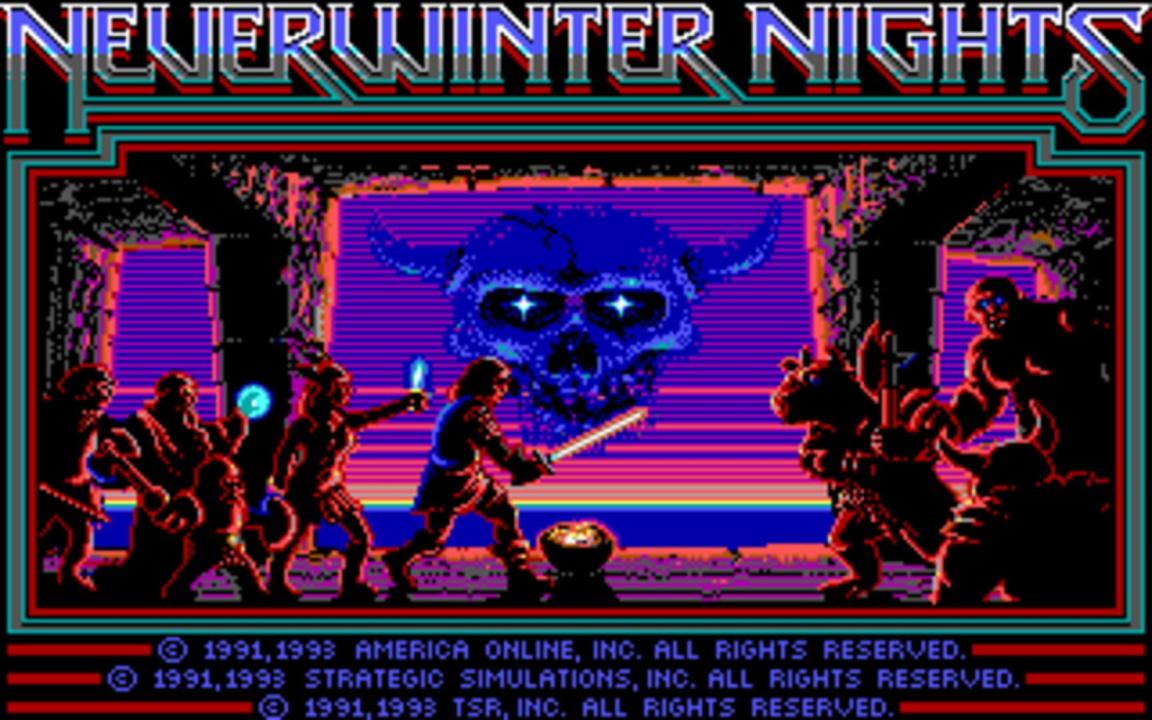 Neverwinter Nights is a computer game released in 1991. It was developed by Stormfront Studios and published by Strategic Simulations, Inc. and ran on MS-DOS. It was the first multiplayer online role-playing game to display graphics, and was hosted on AOL. Neverwinter Nights was developed with gameplay similar to other games in the Gold Box series. Players begin by creating a character. After creating the character, gameplay takes place on a screen that displays text interactions, the names and current status of one's party of characters, and a window which displays images of geography marked with various pictures of characters or events. When combat occurs, gameplay switches to full-screen combat mode, in which a player's characters and enemies are represented by icons which move around in the course of battle. Situated in the city of Neverwinter and more than twenty surrounding regions/areas, the game itself was similar to other official AD&D Forgotten Realms games of its time. As it was an online game, it had several additional menus for online purposes, as well as features unknown to standard AD&D games of the time, such as the ability to teleport from one region/area to another.