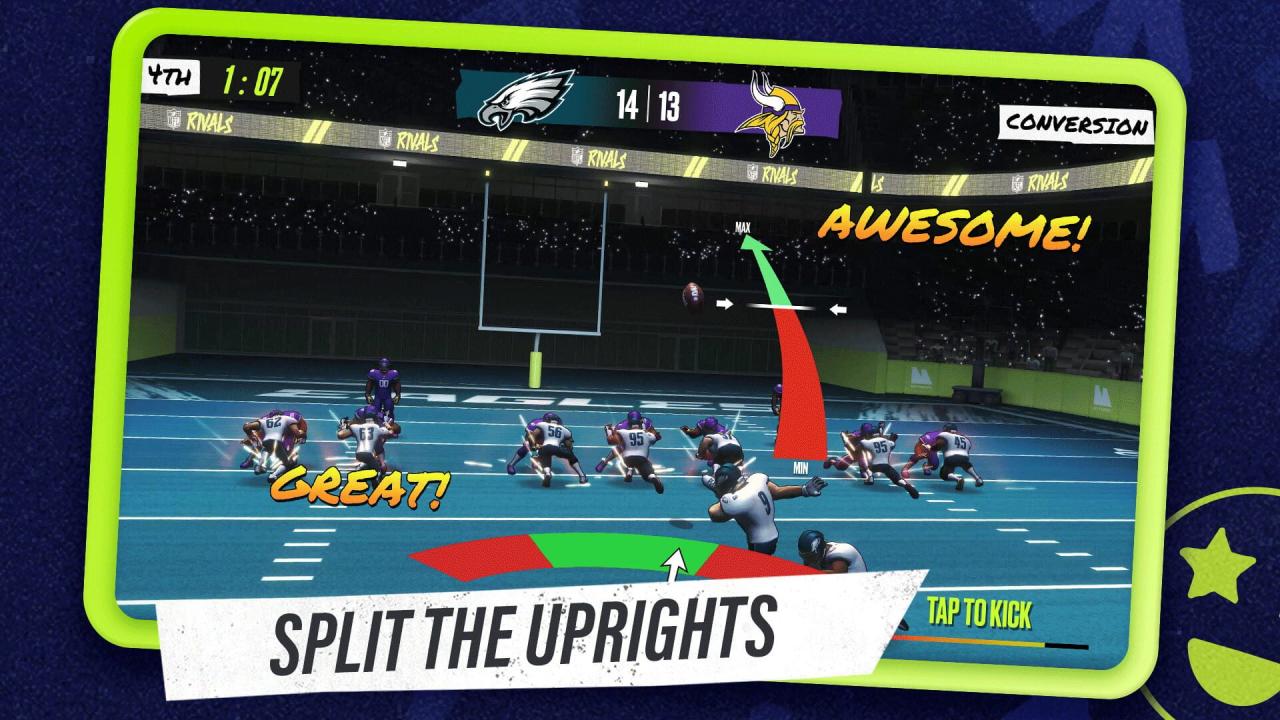 Dive into the newest season of NFL Rivals packed with fresh content and endless possibilities to elevate your game! Become the ultimate football general manager and dominate the gridiron in the hottest officially licensed NFL football digital card game. NFL Rivals blends captivating arcade-style gameplay with top NFL digital player cards, offering a sports game experience like no other. Experience more action, more strategy, and more excitement with new features and ways to play. Showcase your digital card collection skills in fast-paced football that brings a unique and fun twist to mobile sports games. Get game-day ready and score touchdowns with your favorite NFL players and teams.