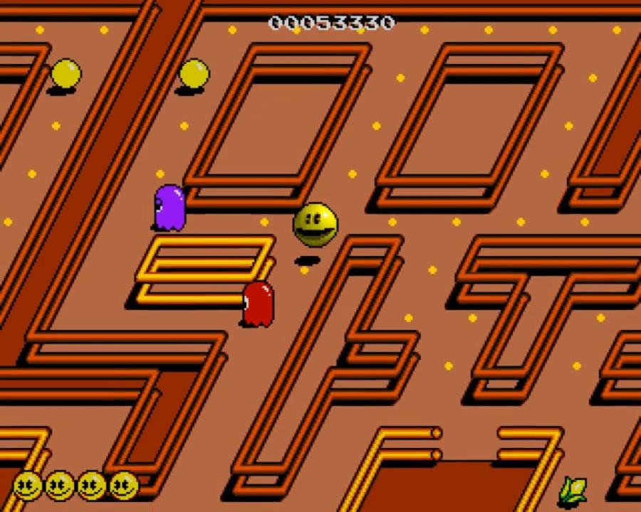 Pac-Mania is a variation on the game Pac-Man. You need to guide Pac-Man around a maze and eat all of the dots on the board to proceed on to the next round. Numerous, multi-colored ghosts also roam the maze trying to stop you. If you eat one of the power pellets in the maze, the ghosts will temporarily turn blue and run from you. Pac-Man can earn bonus points by eating the ghosts when they are in this state. The maze is now shown in isometric perspective and is larger than the screen which will scroll to follow the action. To help get out of tight spots, Pac-Man can now jump. But be careful, because some of the ghosts have learned this trick as well and you could end up in a mid-air collision!