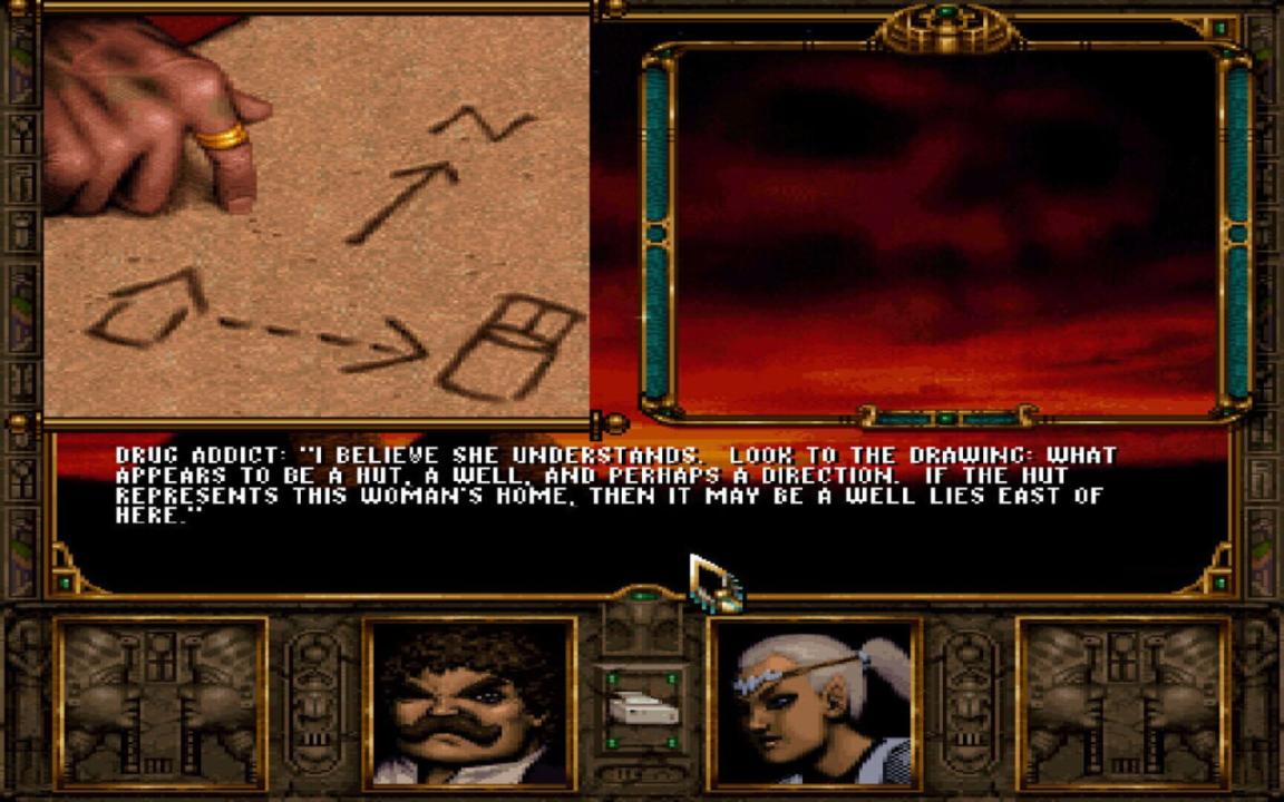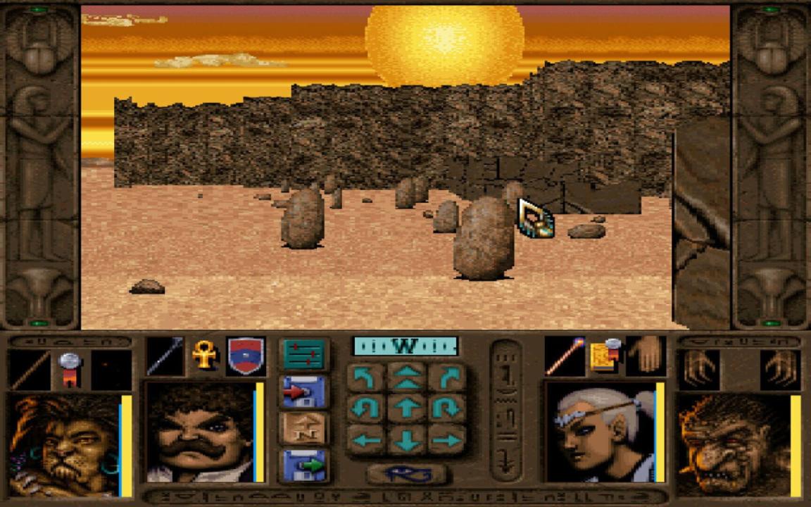 A space-time portal has suddenly appeared, and two brave adventures entered it. It led to Har'Akir, a scorched desert populated by vicious creatures who hold the few peaceful settlements in fear. The only way to escape this wretched place is to find the Stone Prophet, a wall of a obelisk with mysterious hieroglyphs written on it. The adventurers must find the path that leads to the Stone Prophet, but the cursed mummy of the ancient pharaoh Anhktepot is watching every step they make... Ravenloft: Stone Prophet is a sequel to Ravenloft: Strahd's Possession. It utilizes the same graphical engine and gameplay system. Like its predecessor, character creation and combat follow the Advanced Dungeons & Dragons role-playing rules; exploration and combat are viewed from first-person perspective, and the battles occur in real time. The player can import two characters from the previous game, or create two new ones. Up to four additional characters can be met in the game world and recruited to the party. The Egyptian-like desert setting of the game has brought an additional gameplay element: the necessity of regularly drinking water. The heroes must always carry enough water with them when they venture into the desert, or cast water-creating spells.