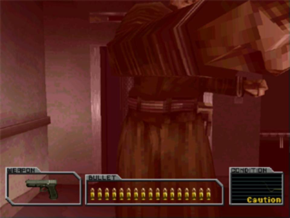 Resident Evil Survivor is the first Resident Evil title to be rendered in real time as opposed to making use of pre-rendered backdrops. Levels are explored in first person, and when enemies are encountered the press of a button will bring up a targeting reticle for shooting. As with most light-gun games there is infinite pistol ammunition available, but limited ammunition for more powerful weapons. At the end of each level two doors are presented which both lead to different levels, although all paths eventually lead to the same ending.