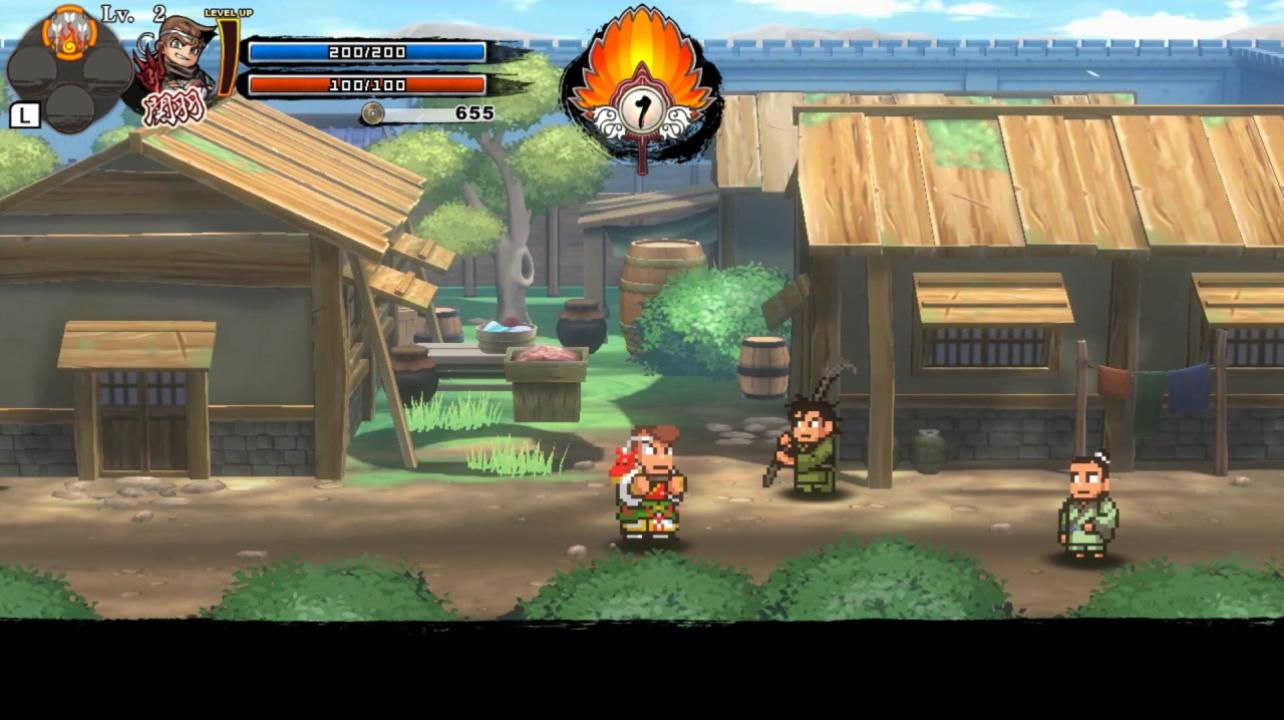 In River City Saga: Three Kingdoms, the characters of the Kunio-kun series run-amok in the world of Sangokushi. The game, which follows the flow of the popular Downtown Special Kunio-kun's Historical Period Drama!, sees players cross countries and challenge the Romance of the Three Kingdoms.