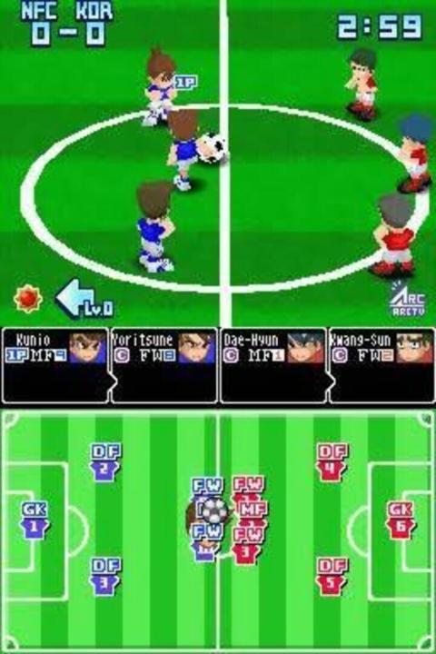 Challenge the world's best soccer teams! Select your matches from 12 opposing teams from around the world. As Captain Kunio, you can strategize by changing your formations, checking weather forecasts, talking to your teammates, and giving them special items to boost their performance!