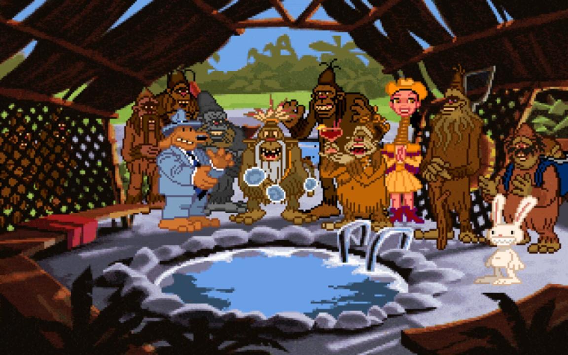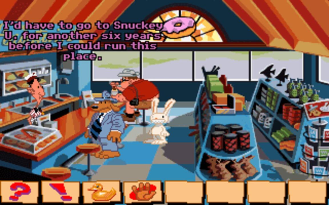 Sam & Max Hit the Road is a graphic adventure video game released by LucasArts during the company's adventure games era. The game was originally released for MS-DOS in 1993 and for Mac OS in 1995. A 2002 re-release included compatibility with Windows. The game is based on the comic characters of Sam and Max, the "Freelance Police", an anthropomorphic dog and "hyperkinetic rabbity thing". The characters, created by Steve Purcell, originally debuted in a 1987 comic book series. Based on the 1989 Sam & Max comic On the Road, the duo take the case of a missing bigfoot from a nearby carnival, traveling to many Americana tourist sites to solve the mystery.