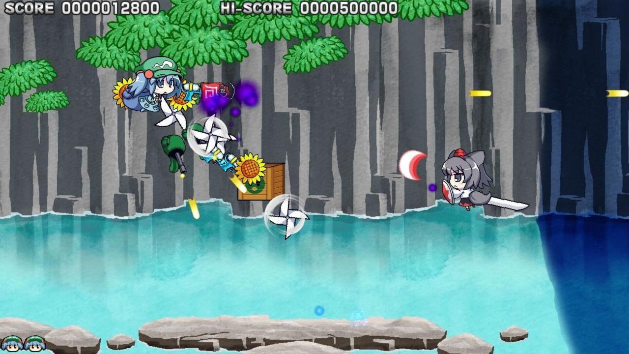Shuushuu Nitori Shoot Shoot Nitori is a Touhou Project danmaku fangame by Twilight Frontier that is based on the game TUMIKI Fighters. This is Twilight Frontier's first danmaku game, and stars Nitori Kawashiro as the protagonist. The main mechanic of the game involves collecting items that are dropped from enemies, or found in crates. When collected, the items will snap to Nitori at the point of contact, becoming a part of the character. Different items have their own unique offensive or defensive abilities, resulting in a wide array of firing patterns depending on which items are attached, and where they are attached. Items also have various degrees of weight, so if Nitori has many heavy items attached to her, then her movement speed will be greatly impacted.