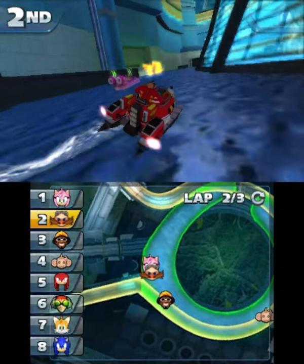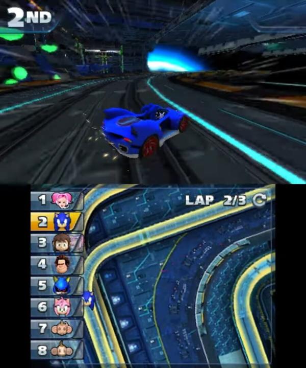 Jump into transforming vehicles and race through land, sea, and sky in Sonic & All-Stars Racing Transformed on Nintendo 3DS!