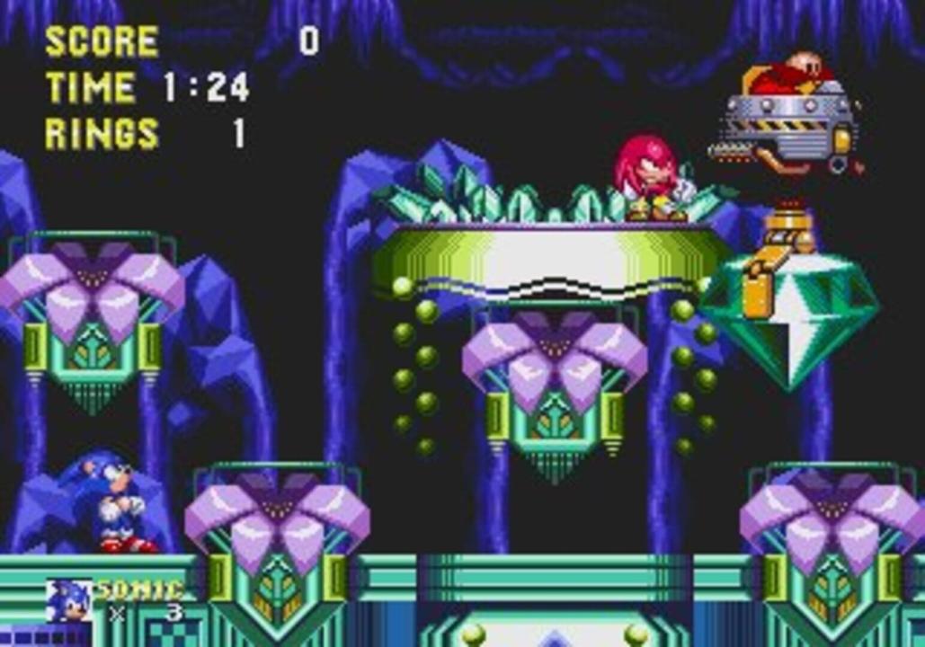 Sonic and Knuckles join forces to defeat rotten Dr. Robotnik's Death Egg invasion! Play Sonic & Knuckles by itself or Lock-on with other Sonic games. This game's revolutionary Lock-on technology adds all new features to your other Sonic games for ultimate replays! Play as Sonic and let loose on Robotnik with amazing new powers. Play as Knuckles and tackle Robotnik and Metal Sonic with bare-fisted attacks, high-speed glides and wall-climbing power! Lock-on with Sonic 3 and transform Floating Island into a huge 34 meg Sonic-epic loaded with new secrets! Play as Sonic, Knuckles, and even Tails - with Game Save! Lock-on with Sonic 2 and play as Knuckles with all his signature moves!