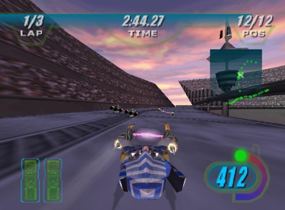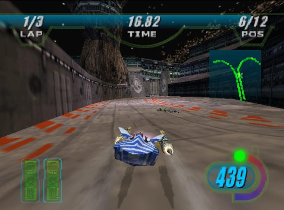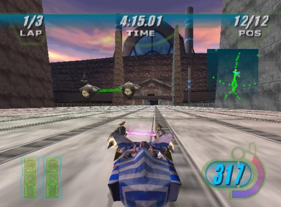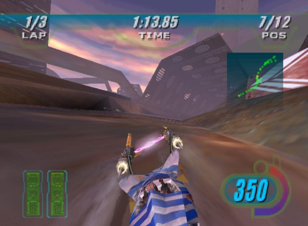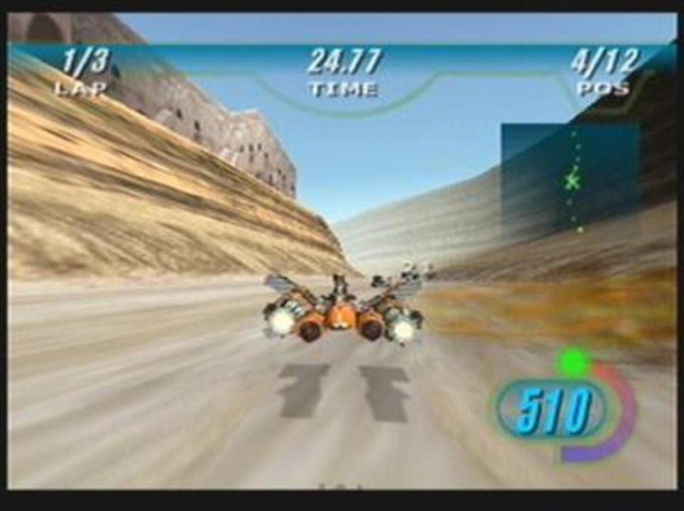 Star Wars: Episode 1 - Racer lets you participate in the famous pod race sequence that was the critical highlight of the film Star Wars: Episode I, The Phantom Menace back in 1999. Take the controls as Jedi-to-be Anakin Skywalker or any one of over 20 pod racers. These lightning-quick vehicles are capable of reaching simulated speeds of up to 600 miles per hour while skimming a mere 4 feet above the ground. Feel the full-force blast while avoiding hazards such as methane lakes, meteor showers, and the notorious Tusken Raiders. You can race alone or against a friend in split-screen mode on more than 21 courses that span over 8 different worlds. This level of customization adds excellent replay value.