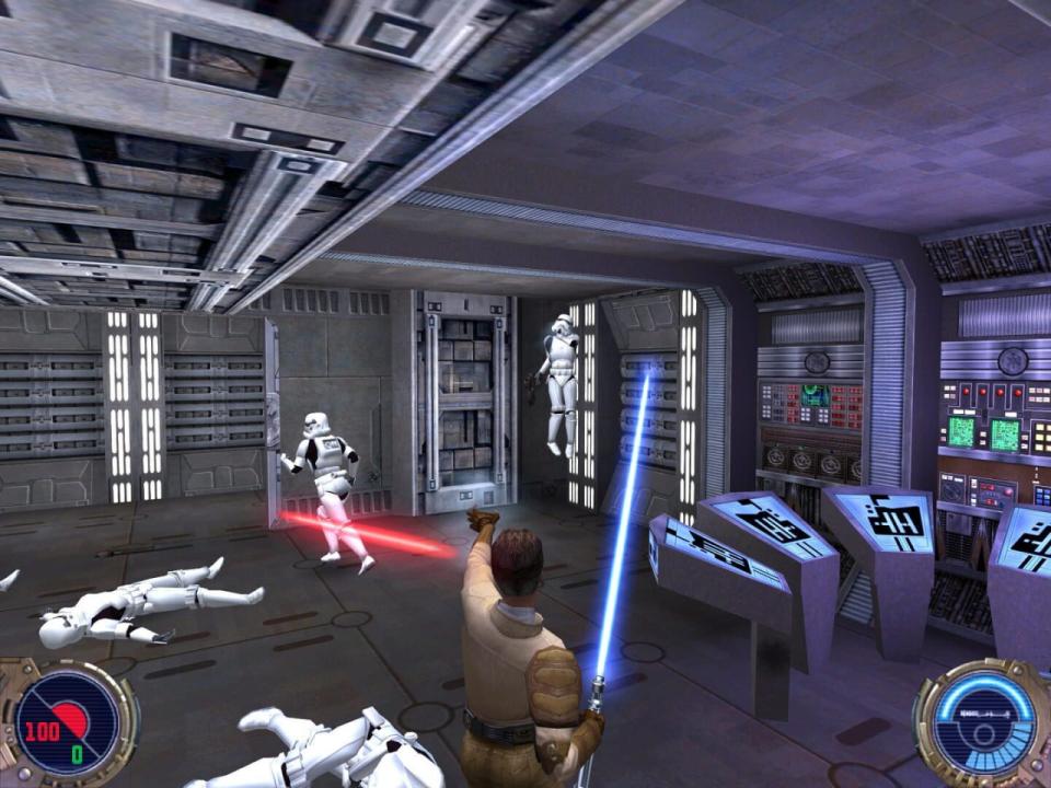 Star Wars Jedi Knight II: Jedi Outcast: In the tradition of the highly acclaimed Star Wars: Jedi Knight series, Star Wars: Jedi Knight 2, Jedi Outcast features rebel agent Kyle Katarn in exhilarating first-person action. Several years have passed since Kyle avenged his father's death and saved the Valley of the Jedi from Jerec and his band of Dark Jedi. Allowing his Force powers to languish for fear of falling to the dark side, Kyle entrusted his lightsaber to Luke Skywalker, vowing never to use it again. But when a new and menacing threat to the galaxy emerges, Kyle knows he must reclaim his past in order to save his future. Explore breathtaking Star Wars locales such as Cloud City, the Jedi Academy on Yavin 4, Nar Shaddaa, and the smugglers' moon. Multiplayer options include deathmatch, saber-only deathmatch, and team capture the flag. Star Wars: Jedi Knight: Jedi Academy: This game in the highly acclaimed Jedi Knight series allows players to take on the role of a new student eager to learn the ways of the Force from Jedi Master Luke Skywalker. Interact with famous Star Wars characters in many classic Star Wars locations as you face the ultimate choice: fight for good and freedom on the light side, or follow the path of power and evil to the dark side.
