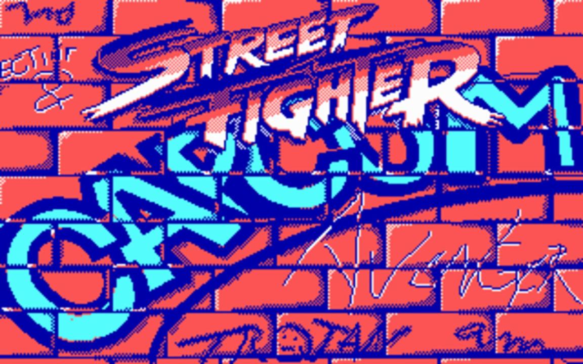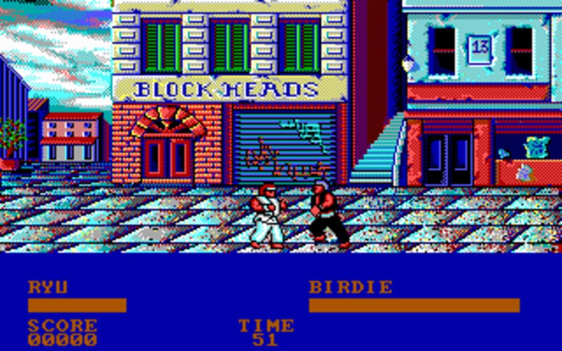 The DOS port of Street Fighter features different graphics and colors than the arcade version while keeping the main gameplay.