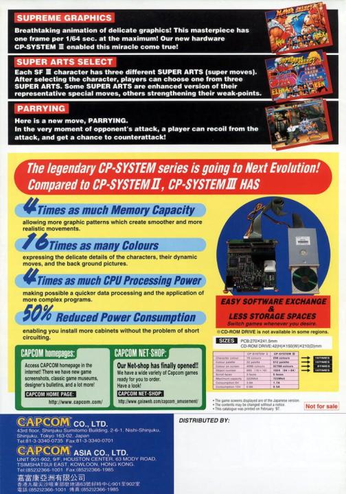 Street Fighter III: New Generation is a fighting game in Capcom's Street Fighter series, originally released as coin-operated arcade game in 1997. Street Fighter III was produced for the CD-ROM-based CP System III hardware, which allowed for more elaborate 2D graphics than the CPS II-based Street Fighter Alpha games (the previous incarnation of the Street Fighter series), while revamping many of the play mechanics. The game, which was designed as a direct sequel to Street Fighter II, initially discarded every previous character except for Ryu and Ken (hence the "New Generation" subtitle), introducing an all-new roster led by Alex.