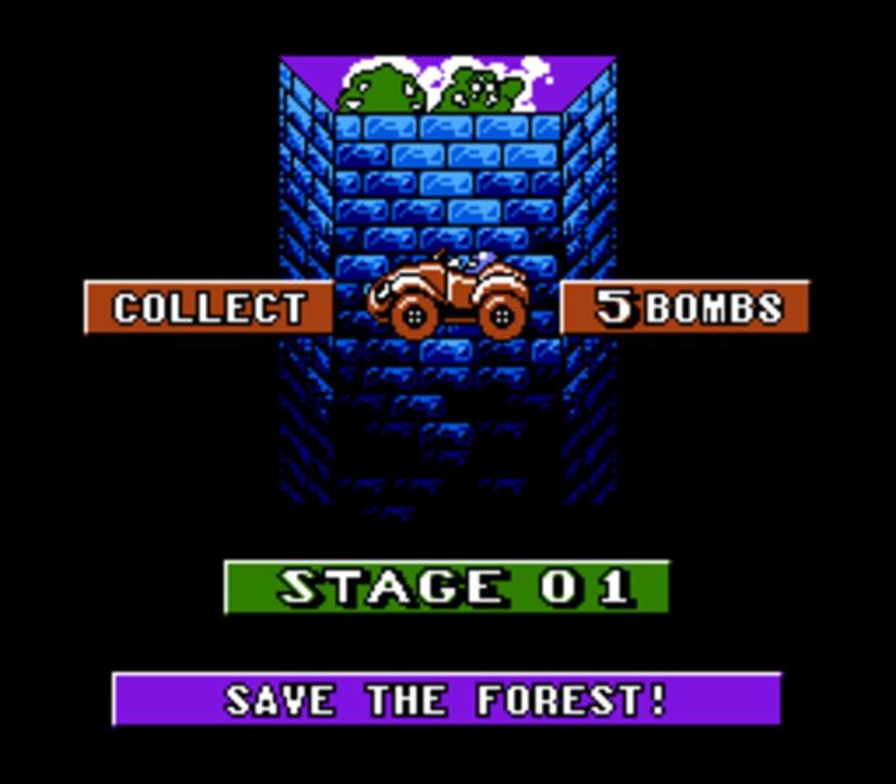 Stunt Buggies, a maze driving game similar to Rally-X, was developed and published by Codemasters for the Commodore 64 in 1992. This game involves 1 or 2 players piloting buggies around dangerous mazes filled with renegade buggies on a quest to collect all the bombs in order to escape the maze. Released originally in the Quattro Arcade computation, The NES versions were released as multicarts and were published by Camerica without a license by Nintendo.