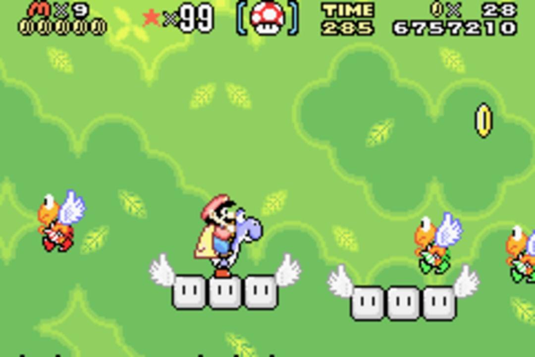 Super Mario Advance 2: Super Mario World is a remake of Super Mario World for the Game Boy Advance starring Mario's dinosaur friend Yoshi for the first time. Super Mario Advance is a four-part series for the GBA with Super Mario games of the NES and SNES era. The remakes came with adjusted graphics, sound and additional content. Each game of the series includes additionally the arcade-classic "Mario Bros" which can be played in multiplayer via link cable.