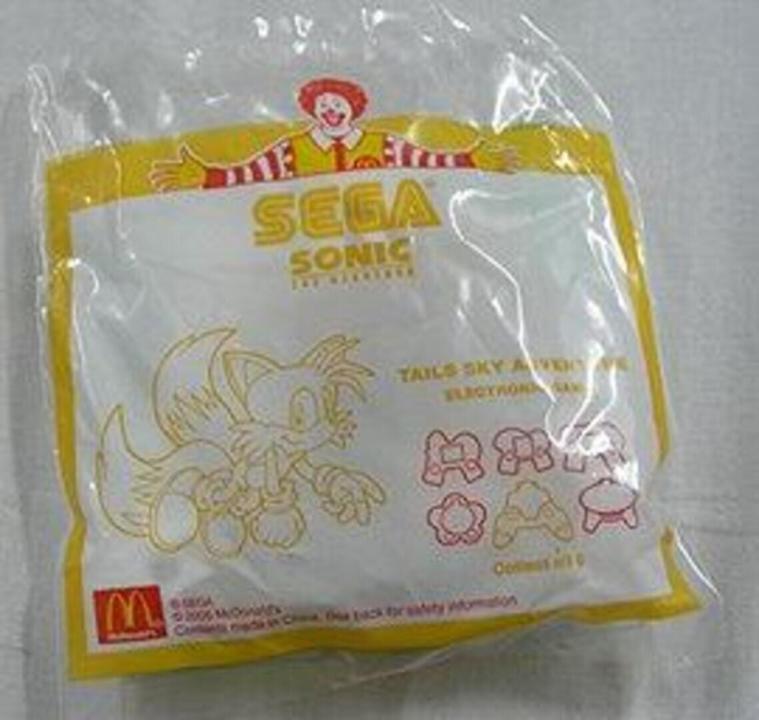 Tails Sky Adventure is an LCD game created for distribution at McDonald's restaurants. They were offered as a part of Happy Meals for a limited time in 2005. This is one of the games that wasn't included in the US promotion. The object of the game is to shoot down enemies which come along using the turret on Tails plane, the Tornado. If 15 are destroyed the level will advance by one. If 5 ships pass by the player the game will end.