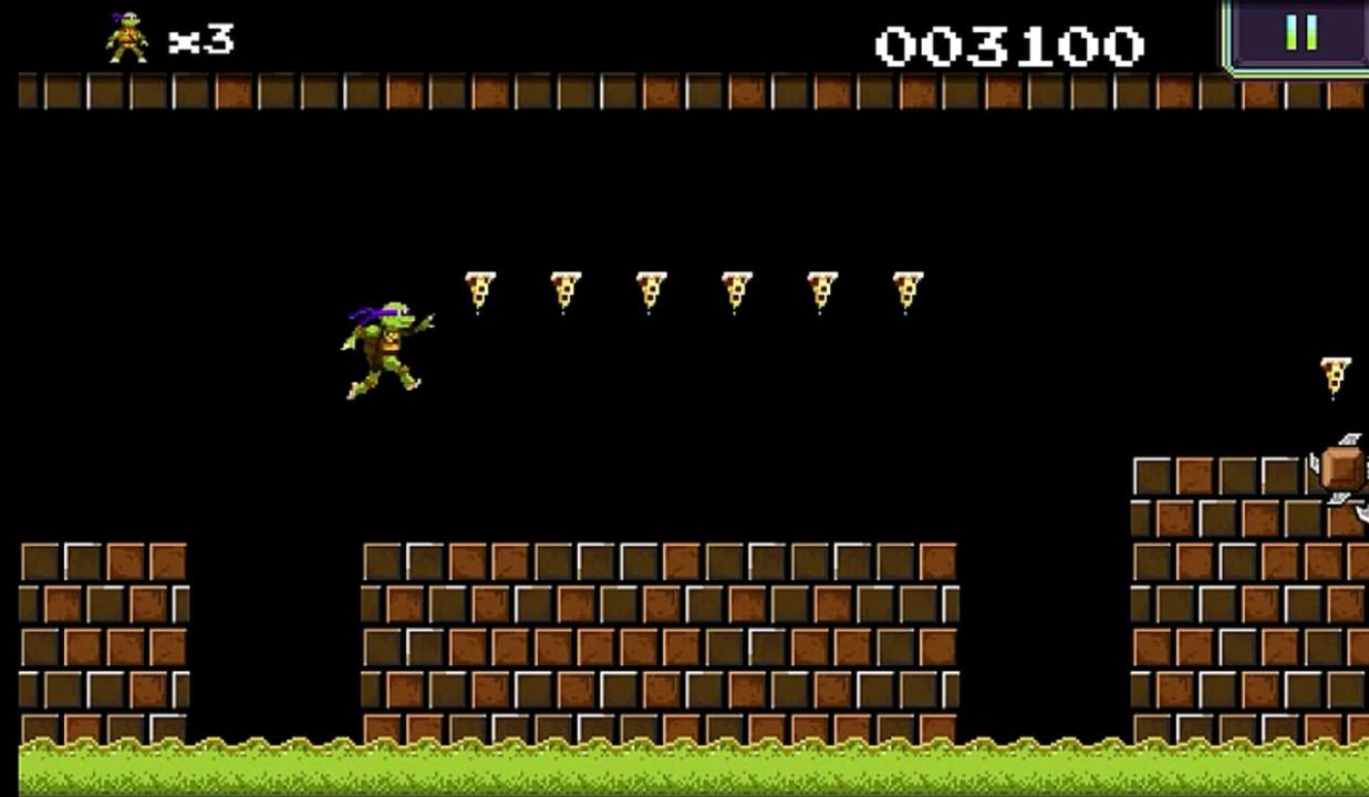 Teenage Mutant Ninja Turtles: Donnie Saves A Princess is a Flash-based browser game released on the Nickelodeon website in April of 2013. Donatello falls asleep while playing video games, and dreams that he goes through several TMNT-ized classic games to rescue "princess" April. At the end of each level, he encounters one of his brothers, dressed up like the princess that fits that level's theme. After he rescues each, they say, "The princess you are looking for is in/on another dungeon/castle/space ship."
