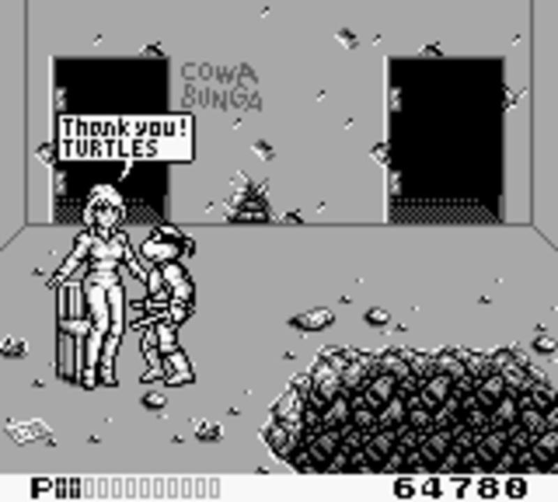 Similar to Fall of the Foot Clan, the previous Game Boy game in the series, the player can switch between turtles before each stage. Each turtle has his own strengths and weaknesses. Donatello has a long range of attack, but attacks slowly, Raphael's attack is fast but has a very short range, and Leonardo and Michaelangelo are well-balanced. When a turtle is defeated, he becomes captured by the enemy. The game is over when all turtles are captured. After completing a stage, the player is given the opportunity to rescue a captured turtle. If no turtles were captured, the player enters a bonus stage instead. The game features several gameplay elements besides the typical beat-em-ups like dodging huge boulders in the underground levels, going around on skateboards or scaling air lifts, and the game also shifts from being typical 2D just walking left and right to a more open area where the turtles can walk all over the screen. The bosses of the game are the standard villains: Bebop and Rocksteady, Baxter Stockman, General Traag, Granitor The Stone Warrior, Krang, Shredder and Super Shredder, though just like Fall of the Foot Clan, Krang serves as the final boss. The game has several difficulty settings which, depending on the level, make more powerful enemies appear or even give the bosses extra attacks.