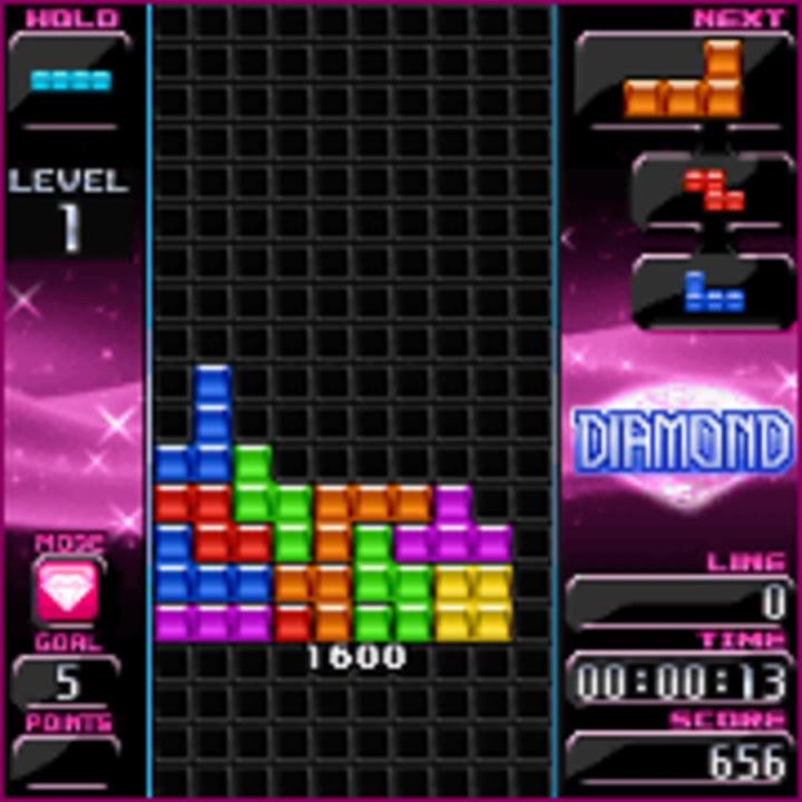 A new technique that makes full use of "diamond block" is now available! There are 4 game modes of "TETRIS DIAMOND": "TETRIS", "DIAMOND", "DIA.2min" and "PUZZLE". In the new mode "DIAMOND" and "DIA.2min", a "diamond block" appears for every 5 falling tetriminoes, and if you erase the line with this block, the score will be doubled. Get a BACK TO BACK bonus by making full use of "TETRIS", "T-SPIN" and the new technique "DIAMOND" that erases using diamond blocks! Please keep updating the record of high score!!