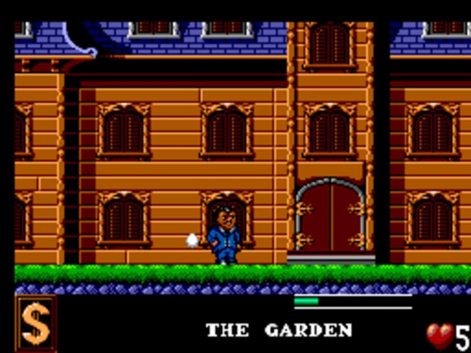 The Addams Family is a side-scrolling platformer based on the movie of the same name. The player takes the role of Gomez who searches for his missing family members. To find them he has to explore six different parts of the mansion, e.g. the woods, which are basic platform levels: the player moves from left to right while jumping a lot and avoiding enemies. Some of them can be dispatched of by a jump on their heads. The main difference to the other versions of this game is a unique level design. There is also a life meter which allows to get hit more often before dying.