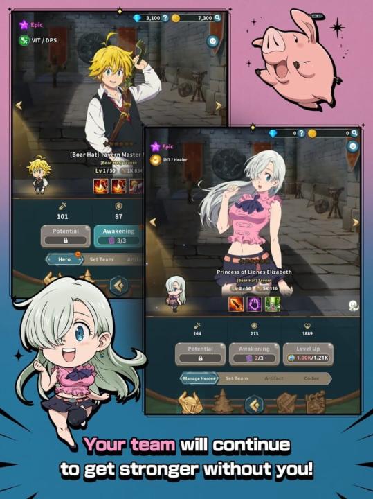a game the seven deadly sins in idle game mode, where you must advance in the story, make your character progress, and face bosses in different modes