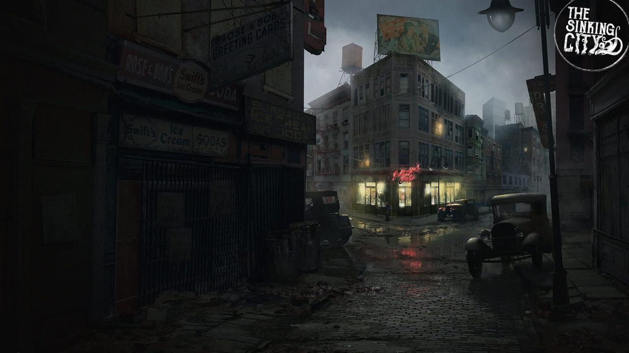 The Sinking City is a game of investigation genre taking place in a fictional open world inspired by the works of H.P. Lovecraft. The player incarnates a private investigator in 1920s, who finds himself in a city of New England, Oakmont Massachusetts. It's currently suffering from extensive waterflood, and its cause is clearly supernatural.
