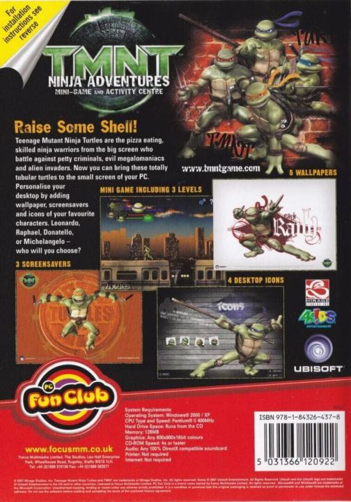 TMNT: Ninja Adventures is a mini game and activity center for Microsoft Windows. It was released by Focus Multimedia Ltd in May 2007. It was only sold in the UK. In the US, Ninja Adventures was packaged with TMNT action figures.