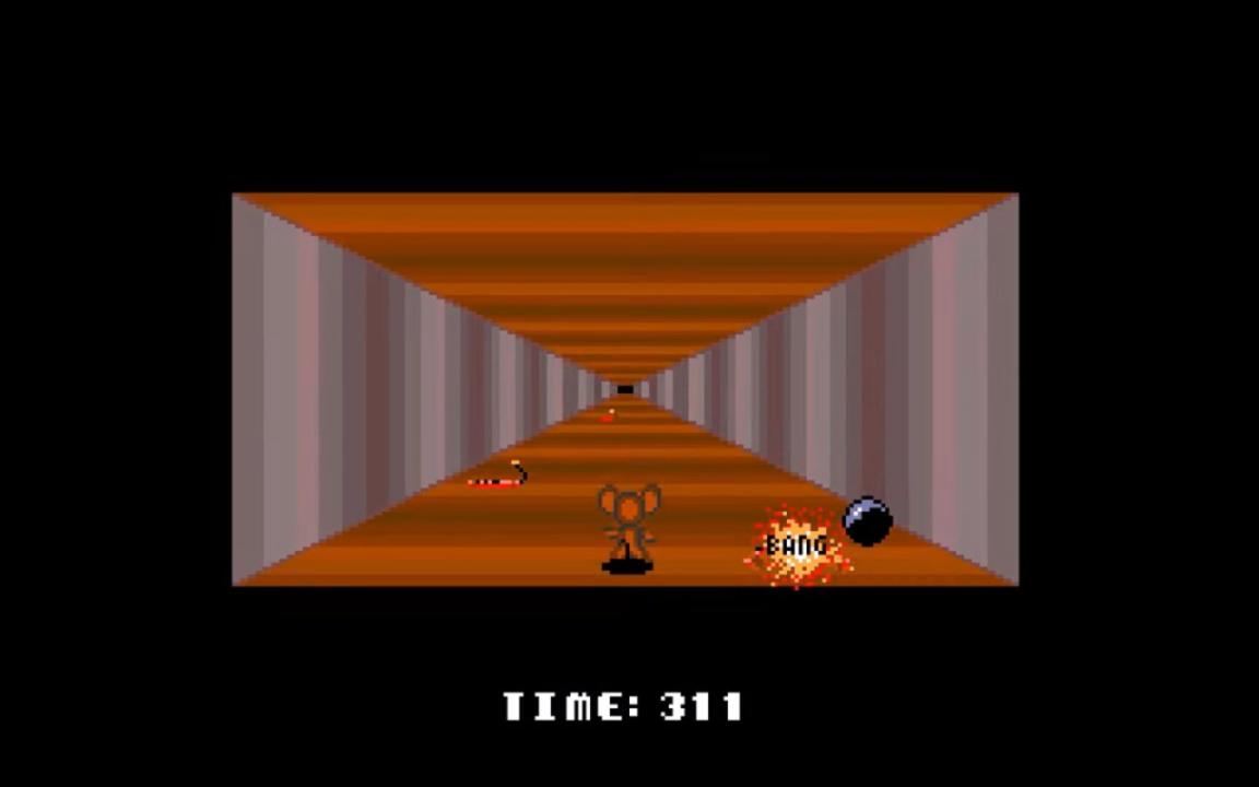 Tom & Jerry is a platformer based on the two cartoon animals. The player takes the role of Jerry who has to navigate the five levels while collecting every piece of cheese. Besides the usual platforming obstacles there is a time limit and Tom who tries to catch Jerry. The player needs to avoid Tom but can also use the environment to get rid of him temporarily: a bowling ball on the head knocks him out or a prepared floor lets him slip. The main levels are side-scrolling, but between each level the game switches to a behind-the-shoulder perspective. Then Jerry has to run through a tunnel while collecting cheese and avoiding dynamite or bombs.