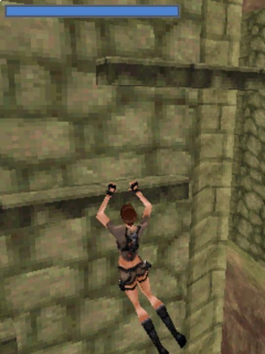 Unlike the previous mobile games, Tomb Raider: Legend was designed in 3D for high-end devices. The game is a side-scrolling platformer with polygonal 3D graphics. Most of the gameplay involves running left and right, jumping between platforms and shooting the various enemies that stand in Lara's way. Obstacles such as electric cables and laser defense systems have to be avoided either by jumping over or rolling under. Sometimes Lara has to swing around poles or use her grappling hook to reach far off platforms. The grappling hook can also be used to swing into and knock out enemies. The gunfights are quite simple and only Lara's regular handgun can be used. Bullets can be dodged by crouching but the enemies can do the same.