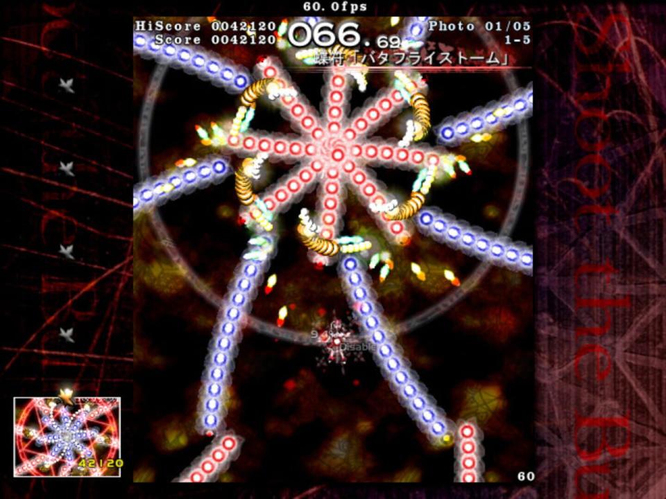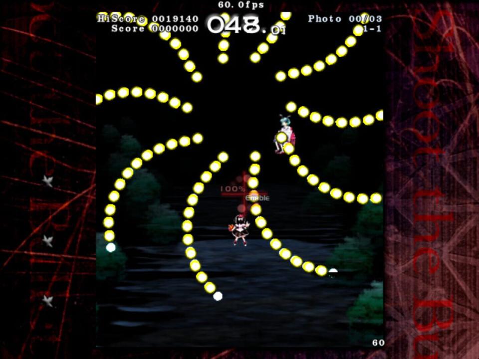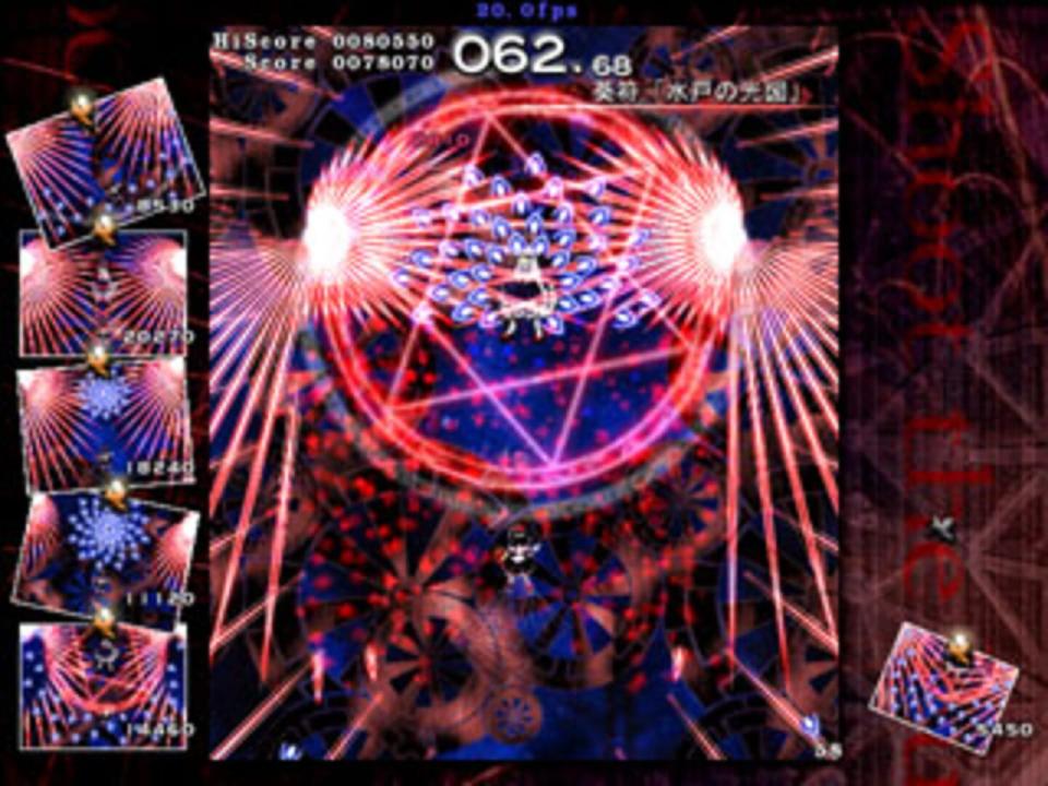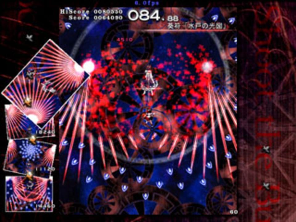 Shoot the Bullet works like a normal danmaku game, with one main difference. You still have to dodge bullets that are thrown at you, but you are unable to shoot at the boss to deal damage. Instead, you must use Aya's camera to take a certain amount of pictures of the boss. To assist the player, Aya's camera is capable of eliminating all of the bullets within the viewfinder when a shot is taken, even if the boss is not within the photo. The shot is considered successful when the boss is featured in the photo, and it will be given a score based on certain criteria including the amount and type of bullets in the photo. The bosses included in this game come from the games Embodiment of Scarlet Devil to Phantasmagoria of Flower View.