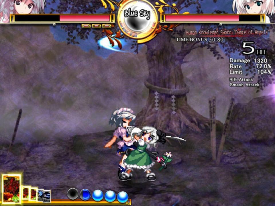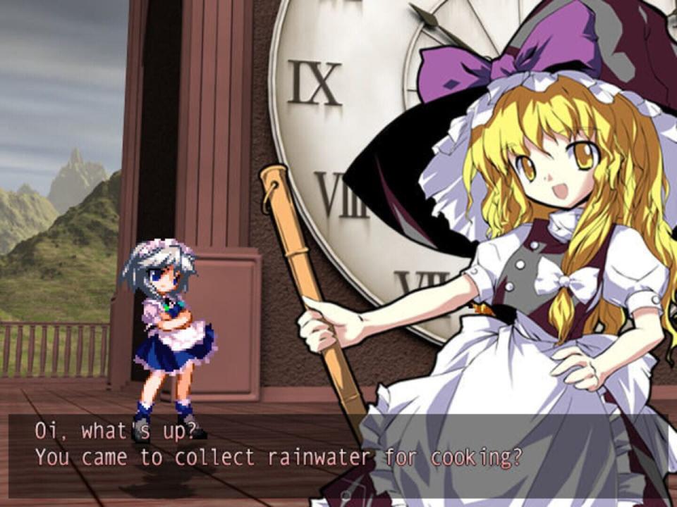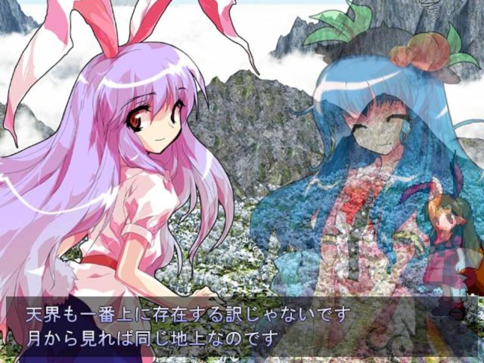 A bizarre phenomenon is occurring in Gensokyo. In the middle of summer, untimely rain and hail fall in the Forest of Magic, snow blankets Hakugyokurou, the Scarlet Devil Mansion is enveloped in a cloudy, dense haze, and the Hakurei Shrine is leveled by a sudden earthquake. Throughout the game, Reimu and the other protagonists set out to investigate the source of the strange occurrences. Tenshi Hinanawi is a celestial. Finding her newfound life in Heaven boring and monotonous, she enviously saw the youkai of Gensokyo stirring many incidents from above. Wielding the power to control the earth and the divine Sword of Hisou, the jaded celestial decides to instigate a catastrophe of her own.