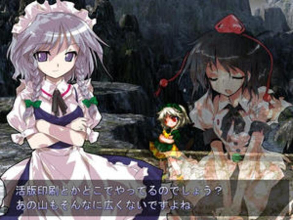 One early morning, a large human-shaped object appeared in the mountains, spewing steam, before disappearing into the mountain fog. Sanae, Cirno, and Meiling all saw the mysterious thing. Sanae thought it might be a giant robot; Cirno was convinced it was a daidarabotchi; Meiling believed it was the Taisui Xingjun. Each of them set out to confront the mysterious thing.