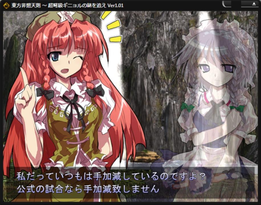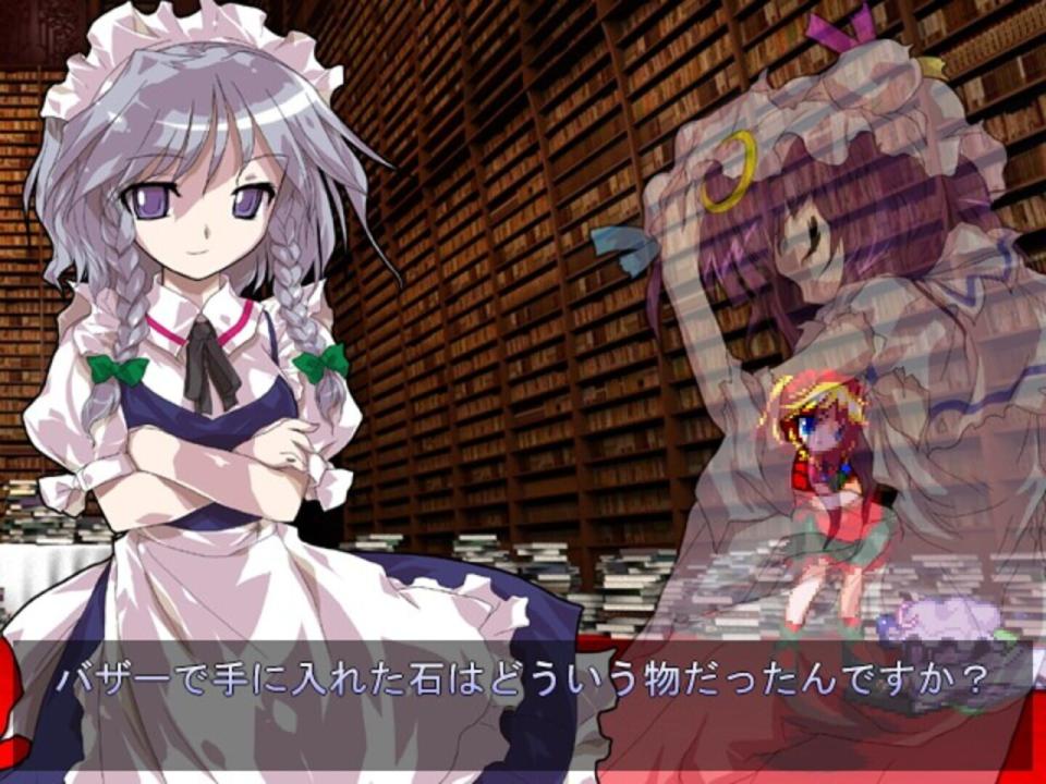 Touhou Hisoutensoku: Choudokyuu Ginyoru no Nazo wo Oe is a standalone expansion pack to the fighting spinoff Scarlet Weather Rhapsody with five new characters, first released by Tasogare Frontier at Comiket 76. Combining this expansion with an installation of Scarlet Weather Rhapsody allows for the use of additional Touhou characters within the new expansion. Like its predecessors, Immaterial and Missing Power and Scarlet Weather Rhapsody, Touhou Hisoutensoku is a collaboration between ZUN and Tasogare Frontier. Tasogare Frontier is well-known for games such as Eternal Fighter Zero, Immaterial and Missing Power and Scarlet Weather Rhapsody.