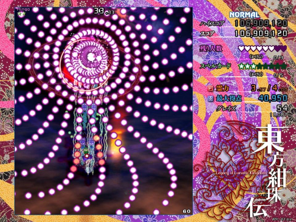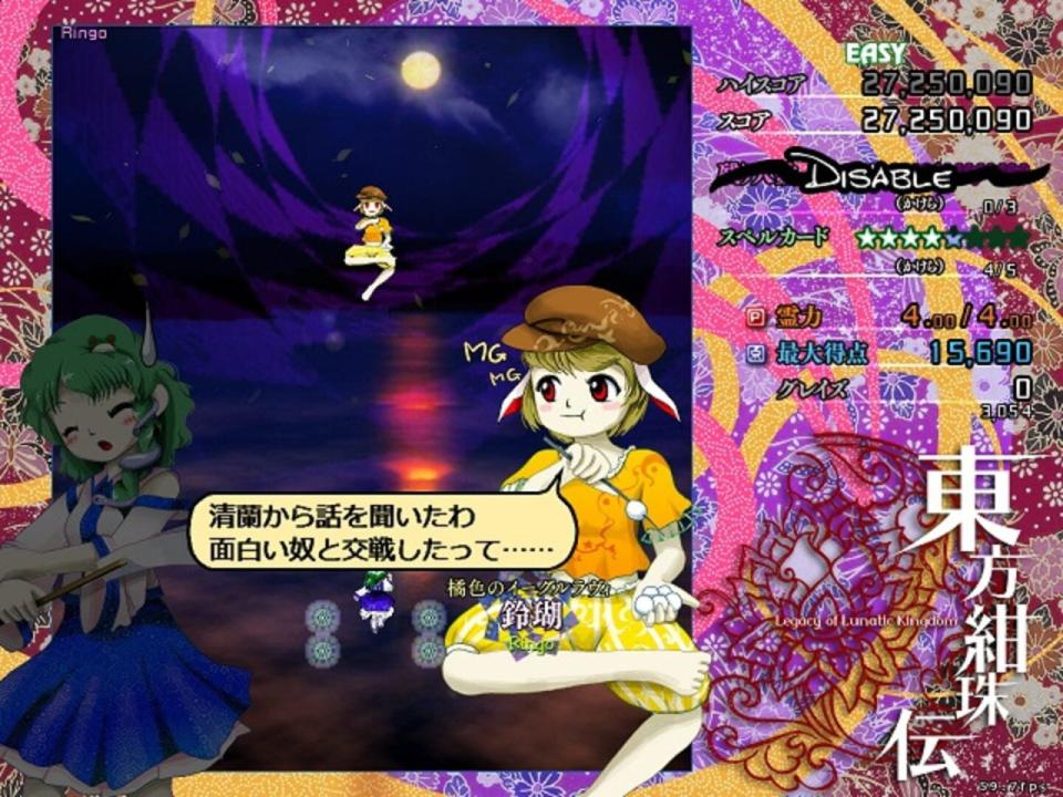 Touhou Kanjuden ~ Legacy of Lunatic Kingdom is the fifteenth official installment of the Touhou Project. It was announced by ZUN on his personal blog on April 22, 2015, at 20:57 JST. A playable demo was released in May 10, 2015, at Reitaisai 12.