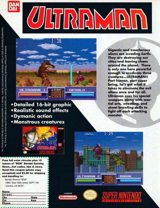 Home console port of the Arcade release. Based on the popular television show from 1967, Ultraman directly follows the story of its source material. Cast in the role of the titular Ultraman, the player must defeat many of the same monsters that appeared in the original series. Taking the appearance of a 1-on-1 fighting game, Ultraman can punch, kick, and grapple his opponent, as well as use a variety of various special moves that must be charged. However, in order to actually defeat his opponent, Ultraman must deplete their continually-recharging life bar, and at that moment hit with his most powerful special attack: the Specium Beam. As the game continues, different enemies may even find ways to avoid this most formidable attack, and Ultraman must adapt... Each stage has a time limit of only three minutes, and there are three lives and no continues.