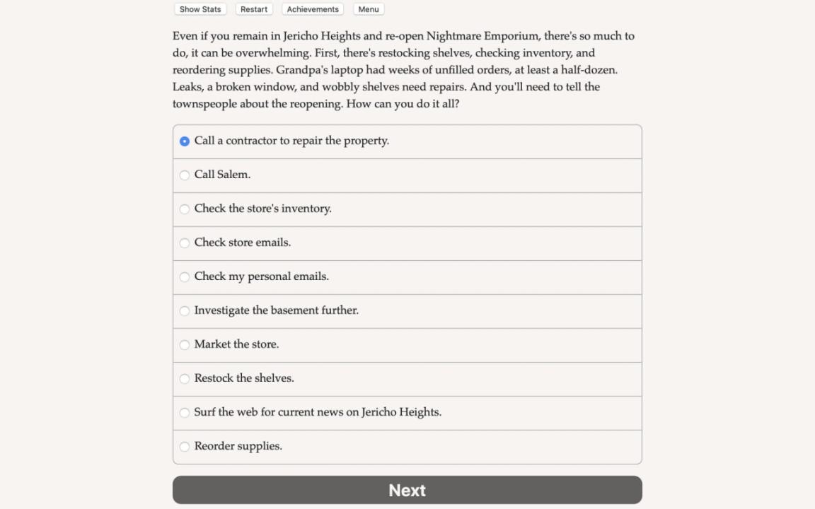 Vampire: The Masquerade — Out for Blood is an interactive horror novel by Jim Dattilo, based on Vampire: The Masquerade and set in the World of Darkness shared story universe. Your choices control the story. It's entirely text-based, without graphics or sound effects, and fueled by the vast, unstoppable power of your imagination. You’ve barely settled into your new home of Jericho Heights on the outskirts of Chicago, before discovering that vampires live in town. You’re struggling to start a new life, meet new people, and maybe even find love. But when your neighbors start disappearing, you’re forced to take action. Take on the role of a vampire hunter to save your town from the influence of Chastain, a vampire more than a century old. When a group of young thin-blood vampires start a war with Chastain, will you choose sides, or hunt them all? Gather your forces and sharpen your stake to take back the night! - Play as male, female, or nonbinary; gay, straight, or bi. - Choose from classic VtM attributes and skills to build out your character. - Employ science and technology, True Faith, or the occult. - Meet an ensemble cast of dynamic characters each with their own skills. - Romance other characters, either human or vampire. - Hunt vampires, study their ways, or try to be Embraced.