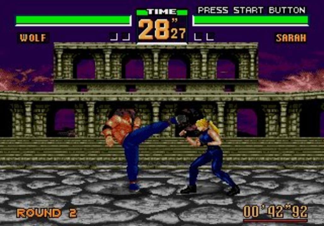 This is a 2D port of the 3D fighting game Virtua Fighter 2. Virtua Fighter (3D) also introduces two new characters which are not included in this 16-bit port.
