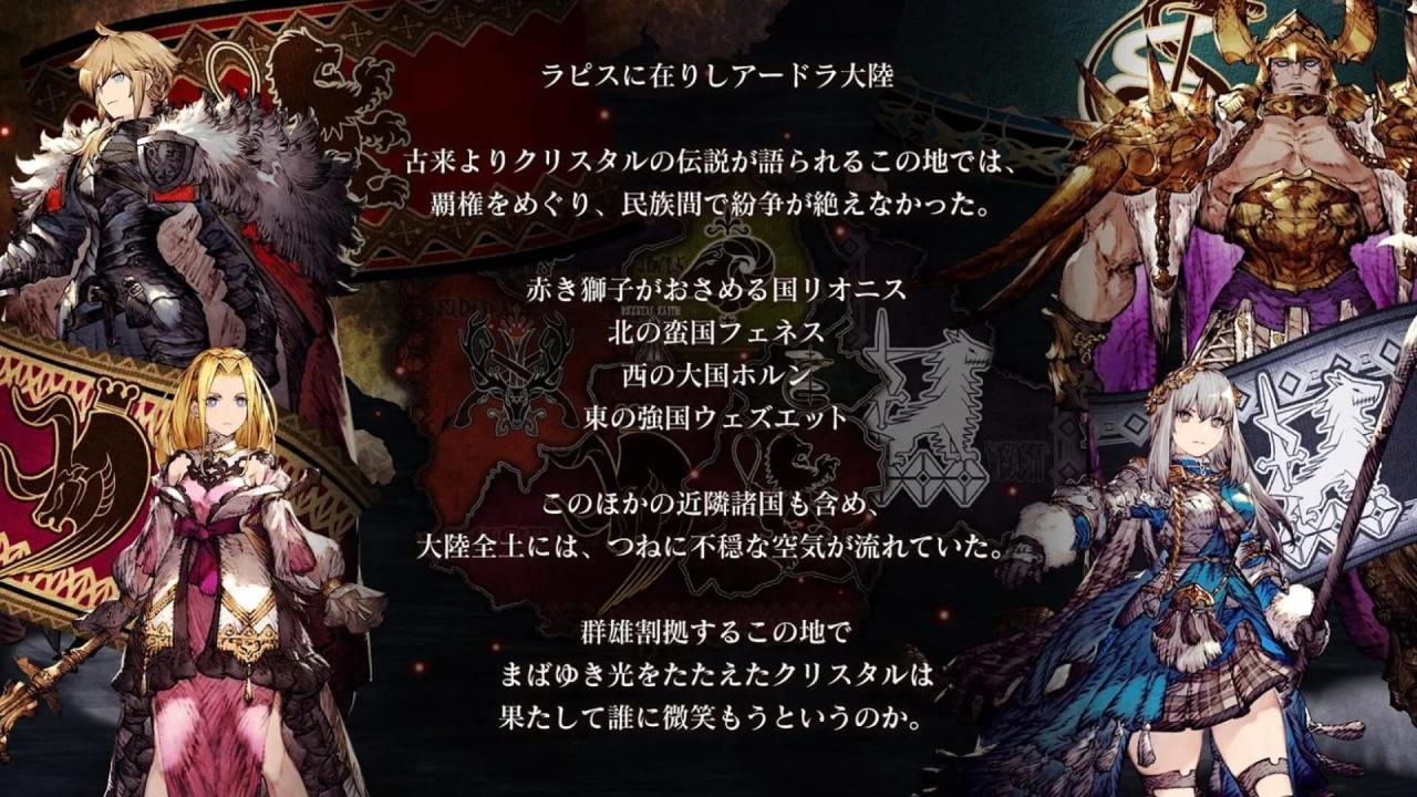 War of the Visions: Final Fantasy Brave Exvius is a tactical role playing game that takes place on the continent of Ardra on the world of Lapis. Summon units and level up characters to unlock new abilities . "In this war-torn world with sword in hand for what would you fight - what would you protect ? The Visions are with the ring..."