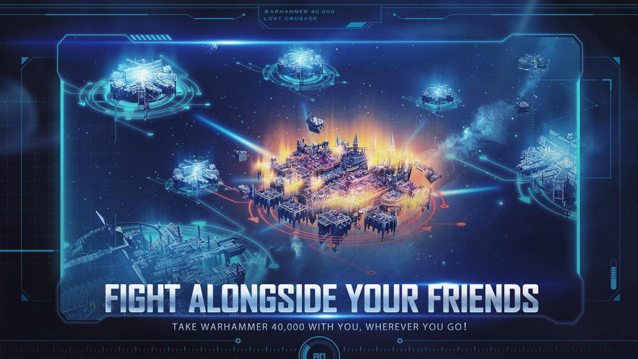Warhammer 40,000: Lost Crusade is an online MMO strategy mobile game set in the Warhammer 40,000 universe. As a Space Marine Force Captain, command a Battle Barge, train elite troops, recruit legendary heroes and play with allies to defeat the Forces of Chaos and conquer your part of the galaxy! For in the grim darkness of the far future, there is only war. "For the Emperor!"