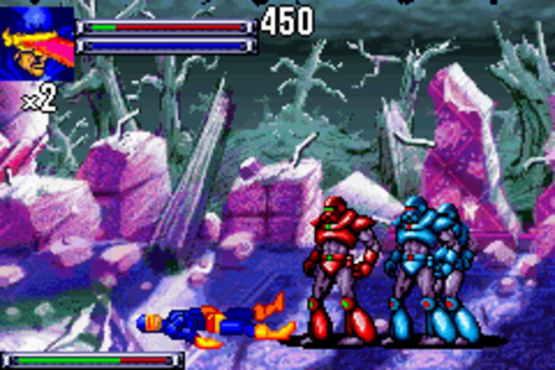 You and your fellow X-Men are lost in an alternate reality, only to discover that supervillain Apocalypse reigns supreme. Not only do you find yourself at the mercy of his minions, but also the line between foe and friend is dangerously blurred in this mirror universe. Your only hope is to fight your way through numerous enemies and threats until you reach the Warp Gate and return home. Will you survive long enough to make it there? X-Men: Reign of Apocalypse is the first X-Men game released for the Game Boy Advance platform. It offers side-scrolling gameplay combined with fighting-game action. Best of all, you become your favorite X-Men character--Wolverine, Cyclops, Storm, or Rogue--and do battle using the character's signature moves. While in story mode, you'll battle Apocalypse's minions as you try to return to your own dimension. In versus mode, you can compete head-to-head in a deathmatch or join forces to battle enemy hordes, unlock X-Men friends, and capture the flag. Reign of Apocalypse's fighting system lets you score experience points using your brute strength and special mutant powers. At the end of each level, you can use these points to increase your damage potential, agility, or mutant power to unleash the ultimate X-Man!