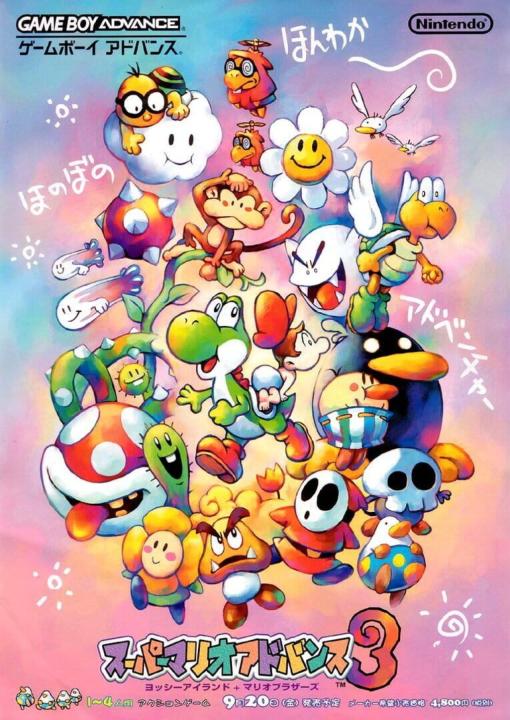 Super Mario Advance 3 is a GBA remake for the SNES with the dinosaur Yoshi and his friends as main characters carrying Baby Mario and Luigi on their back. Super Mario Advance is a four-part series for the GBA with Super Mario games of the NES and SNES era. The remakes came with adjusted graphics, sound and additional content. Each game of the series includes additionally the arcade-classic "Mario Bros" which can be played in multiplayer via link cable.