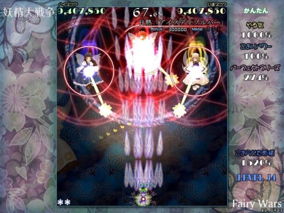 The 12.8th game in the Touhou Project, which focuses on freezing bullets rather than dodging them.