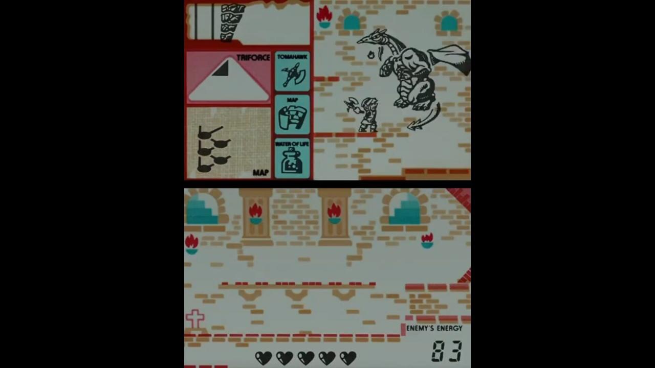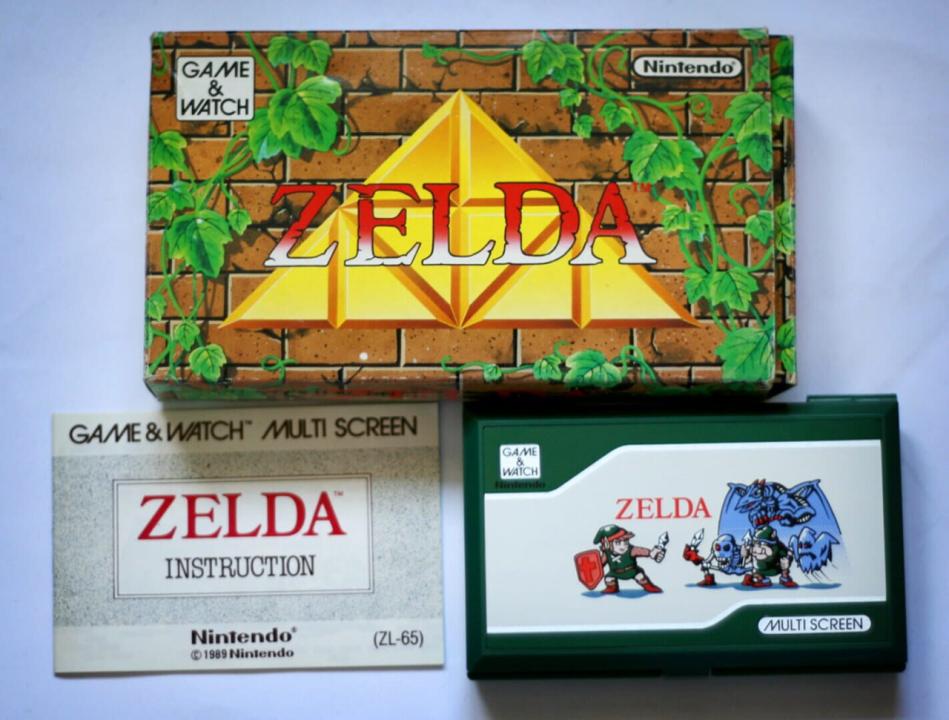 Zelda is a multiscreen Game & Watch game that was only released in English as a stand-alone system pre-loaded with the single game. It has dual screens which fold in a clamshell design, similar to the Nintendo DS. It was re-released as part of the Nintendo Mini Classics line in 1998 and 2007. The complete game can also be unlocked in Game & Watch Gallery 4 for the Game Boy Advance and Wii U Virtual Console. Its core formula is based on that of the original The Legend of Zelda, where Link must fight through eight dungeons and obtain the eight shards of the Triforce of Wisdom. However, it bears more gameplay similarities to The Adventure of Link, since it is 2D and from a side-on perspective. The game features an original, though minimal storyline.